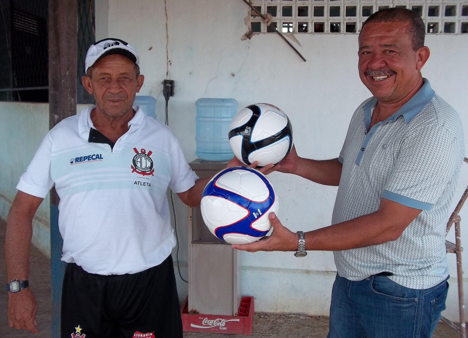 ao lado do presidente Lobão mostrando as bolas do campeonato recebidas